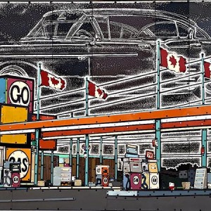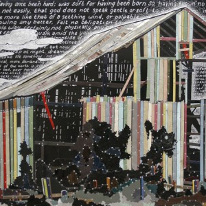 This series of aluminum painting makes use of reclaimed metal siding which is cut, carved and layered into a mosaic of texture arid colour. The Sacred Arboreal Portrait Project (SAPP) is an on going body of work which aims at historically documenting specific trees who share their space with the manufactured landscape/cityscape. It is that which happens at the meeting of the natural and the constructed that Hind examines.